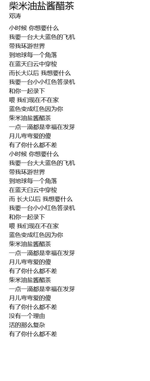 | [00:58.550] | chái mǐ yóu yán jiàng cù chá |