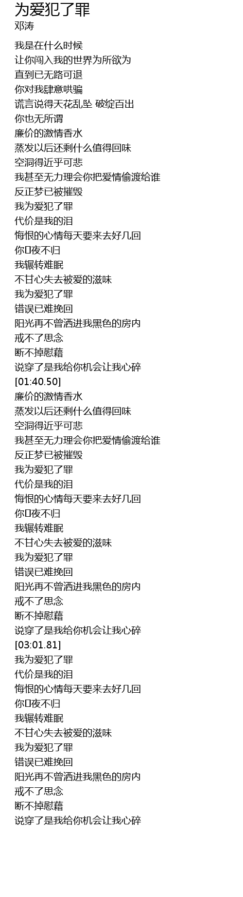 | [01:00.37] | wǒ wèi ài fàn le zuì |