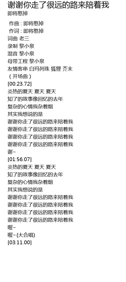 | [01:50.48] | 谢谢你走了很远的路来陪着我 |