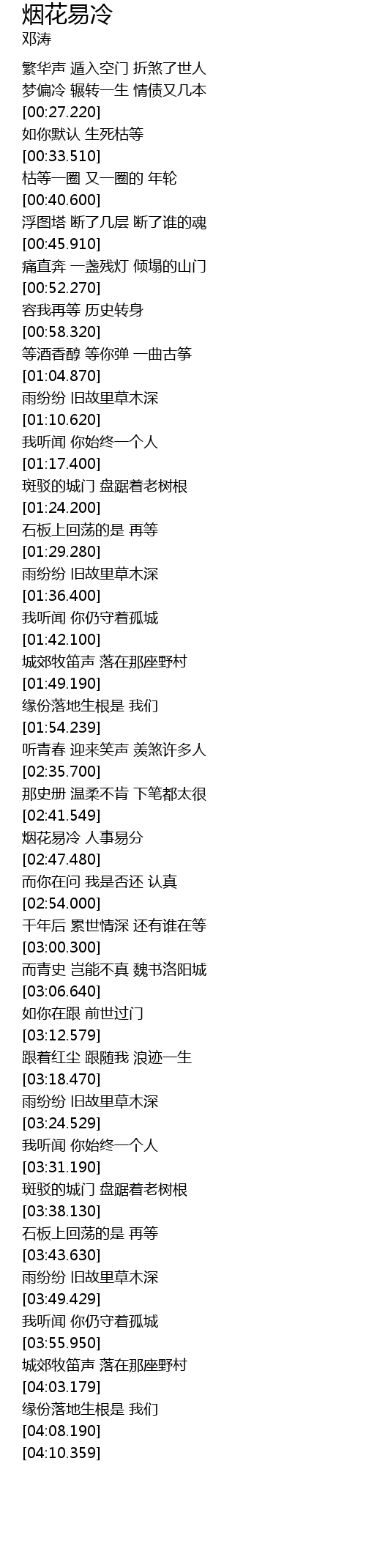 | [02:42.859] | yān huā yì lěng rén shì yì fēn |