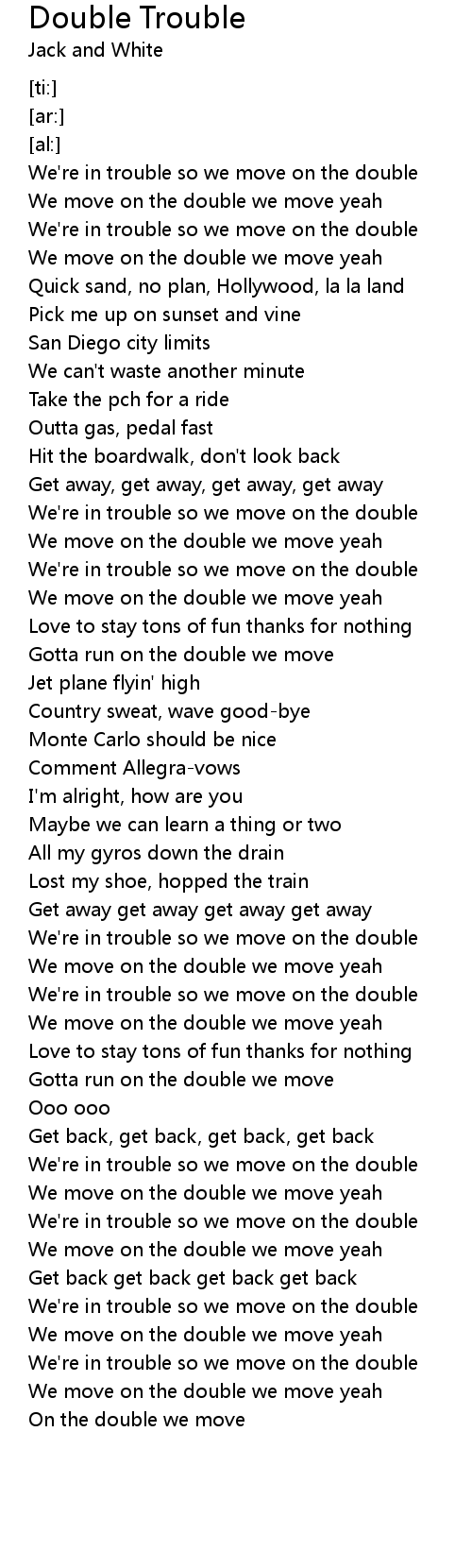 We're in trouble so we move on the double |