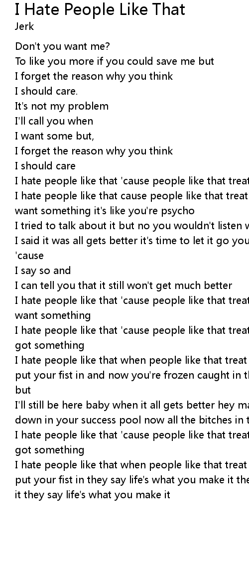 I hate people like that 'cause people like that treat you like that when you've got something |