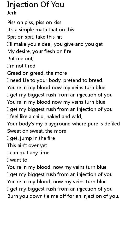 I get my biggest rush from an injection of you |