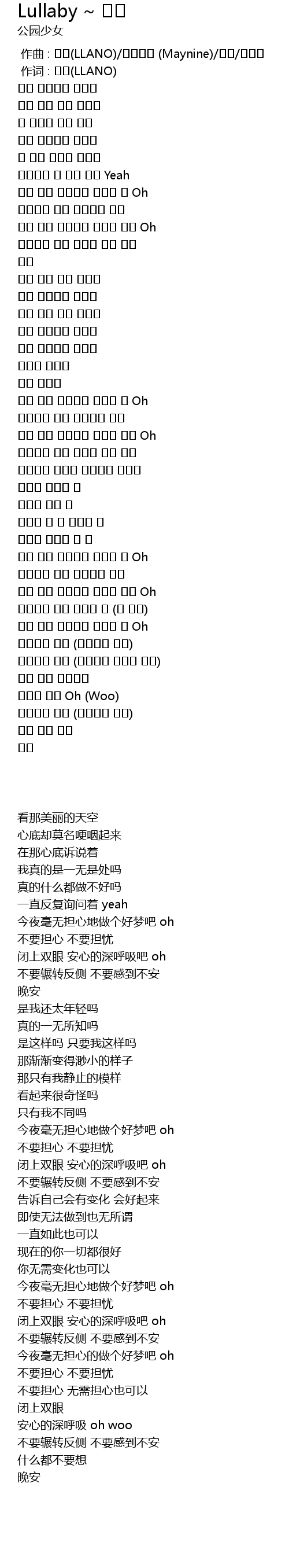 | [00:00.000] | zuò qǔ : LLANO Maynine |