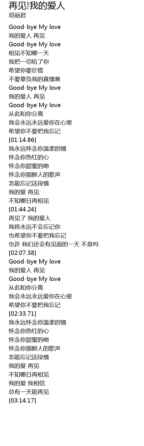 再见!我的爱人 zai jian! wo de ai ren Lyrics