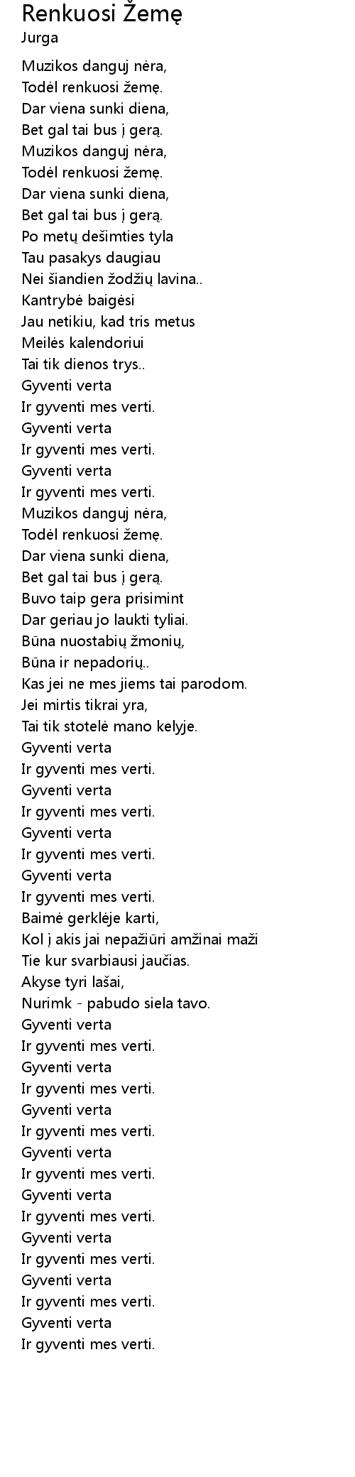 | Song | Renkuosi Žemę |