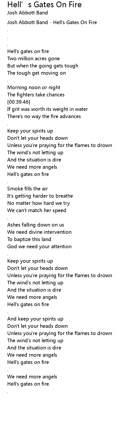 [00:00.24] Josh Abbott Band - Hell's Gates On Fire