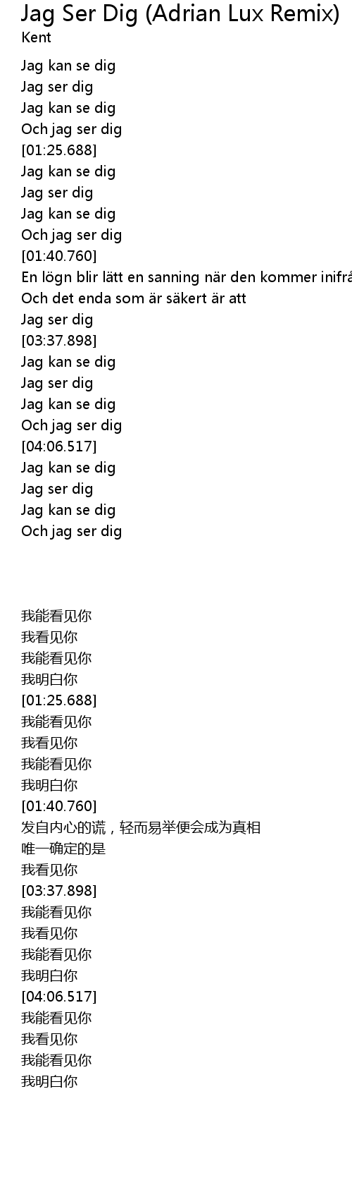 | Song | Jag Ser Dig (Adrian Lux Remix) |