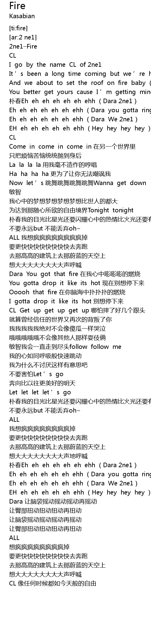 | [00:00.517] | 2ne1 Fire |