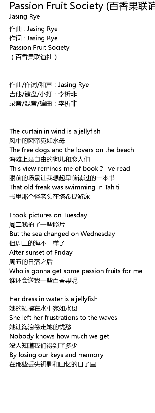 | zuò qǔ zuò cí hé shēng: Jasing Rye | |