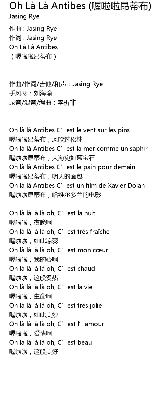 | Song | Oh Là Là Antibes (喔啦啦昂蒂布) |