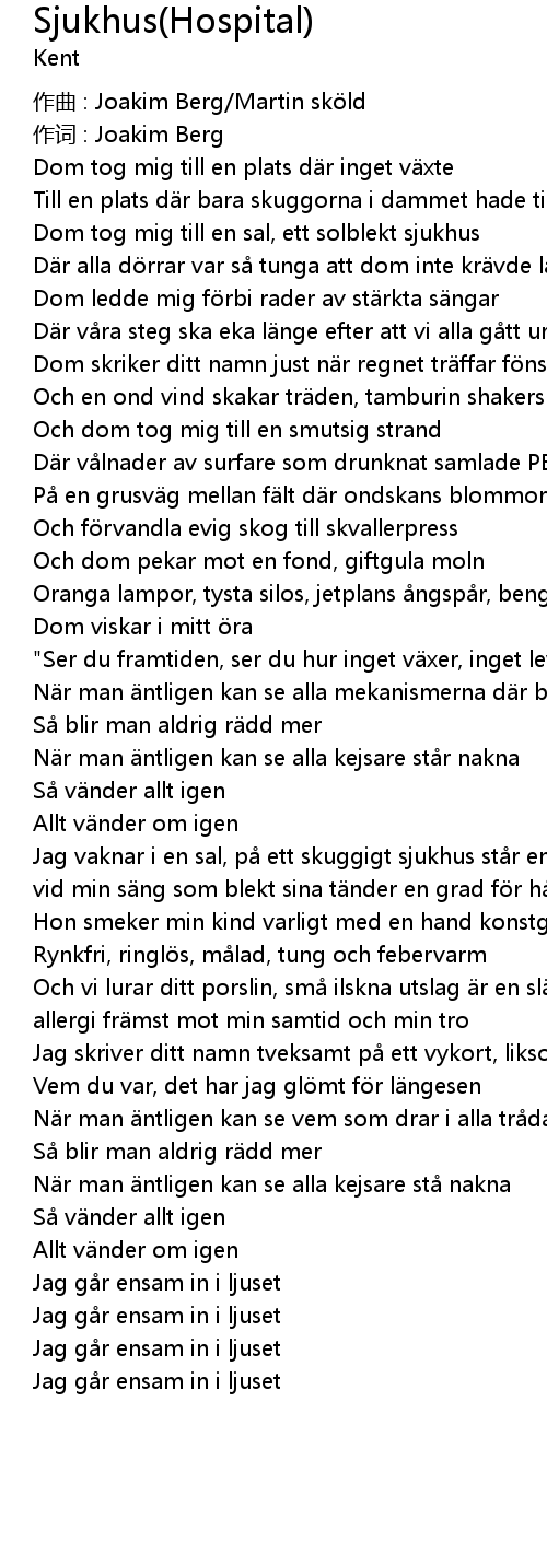 | Jag vaknar i en sal, p ett skuggigt sjukhus st r en kvinna | |