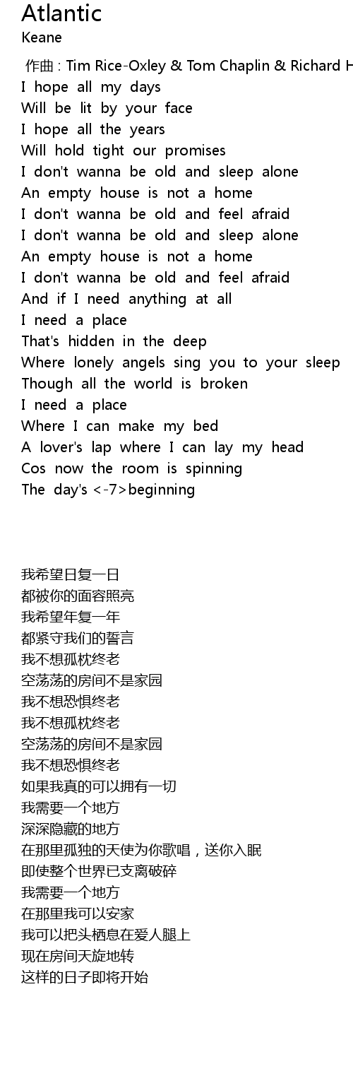 | [00:00.00] | 作曲 : Tim Rice-Oxley & Tom Chaplin & Richard Hughes |