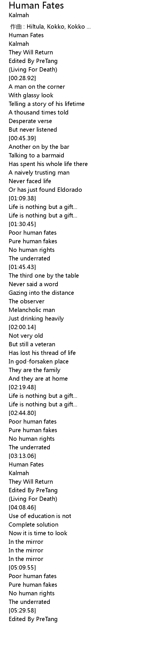 | [03:28.16] | Human Fates |