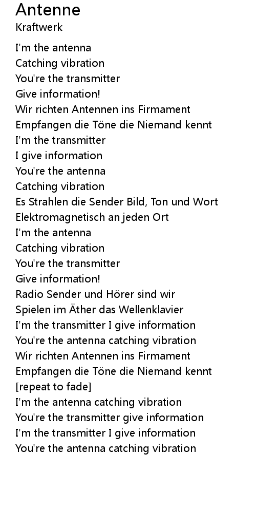 | Song | Antenne |
