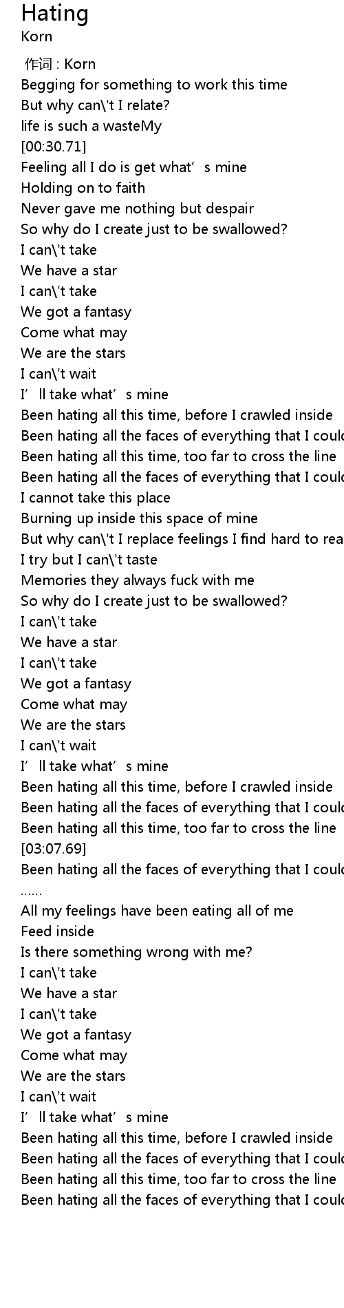 | [00:00.00] | 作词 : Korn |