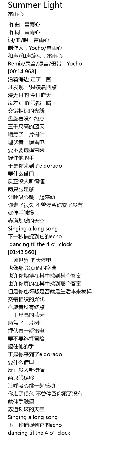 | [00:00.000] | 作曲 : 雷雨心 |
