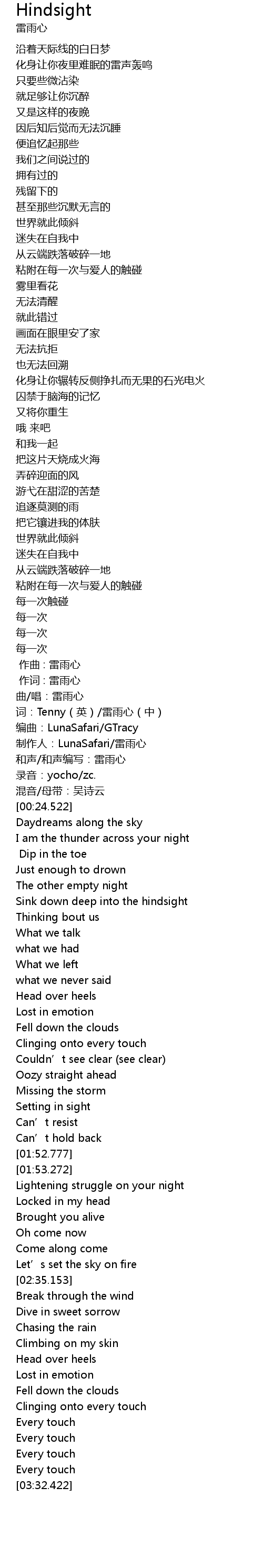 | [00:06.344] | 词:Tenny(英)/雷雨心(中) |
