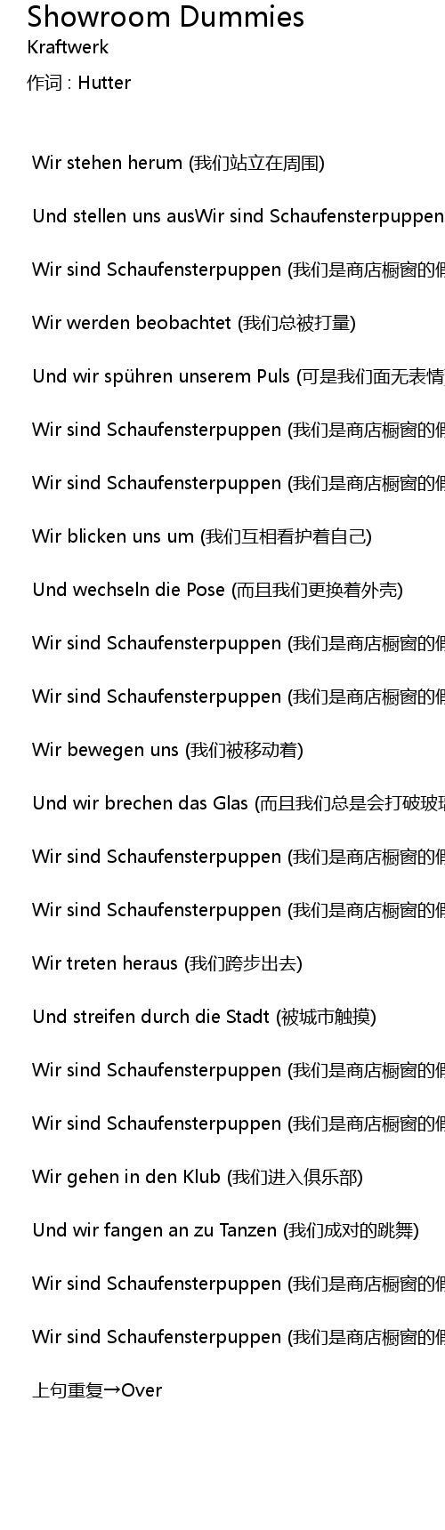 | Und stellen uns ausWir sind Schaufensterpuppen chén liè zài shāng diàn chú chuāng lǐ | |