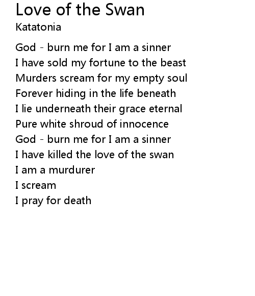 | I have killed the love of the swan | |