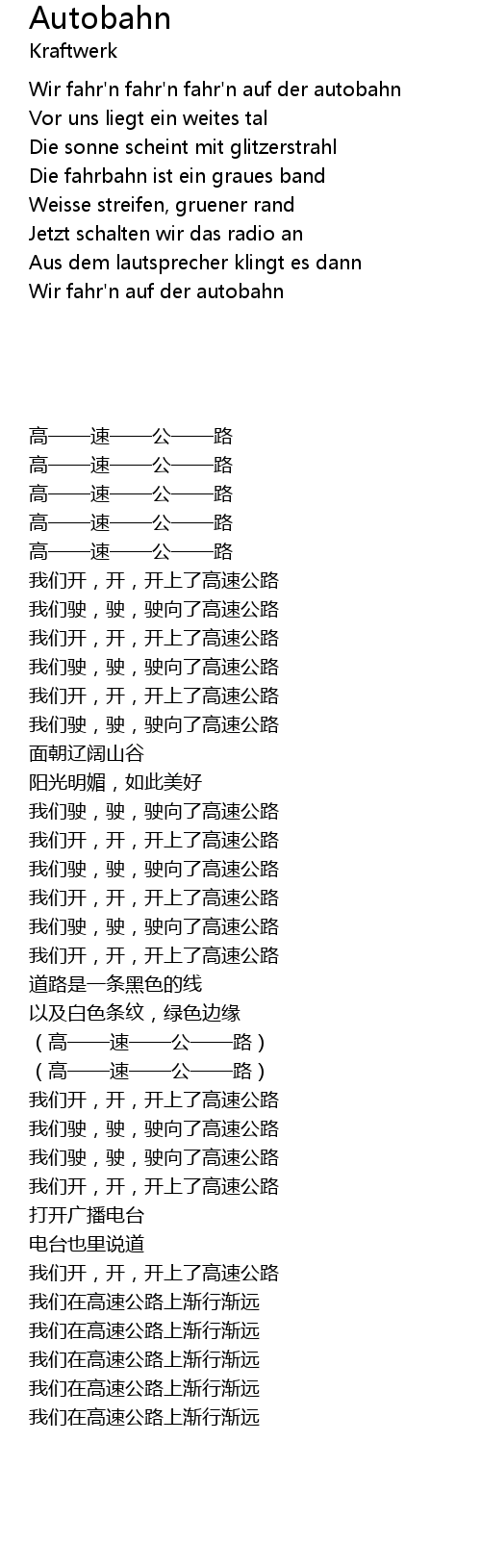 | Wir fahr'n fahr'n fahr'n auf der autobahn | |