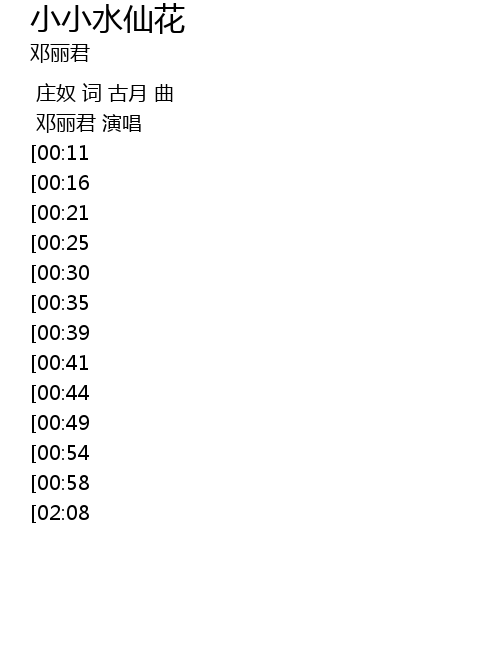 | [01:20][00:11] | xiǎo xiǎo de shuǐ xiān huā |