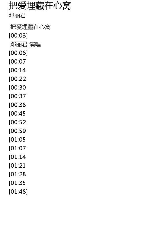 | [00:00] | bǎ ài mái cáng zài xīn wō |