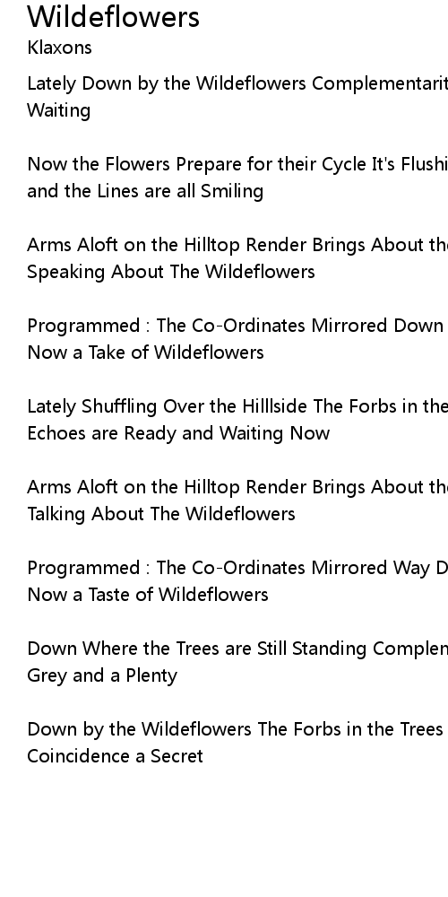 Programmed : The Co-Ordinates Mirrored Down There in the Dip Refraction Triggers Now a Take of Wildeflowers