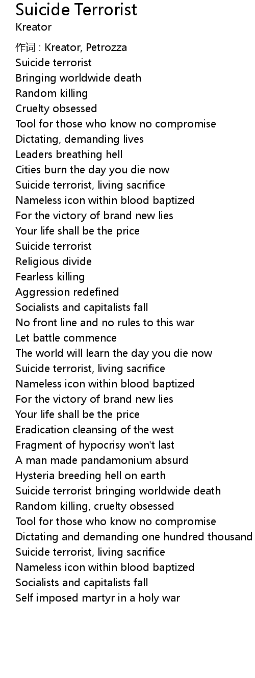 | Song | Suicide Terrorist |