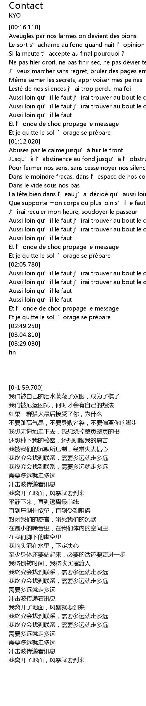 | [01:37.030] | Aussi loin qu' il le faut j' irai trouver au bout le contact |