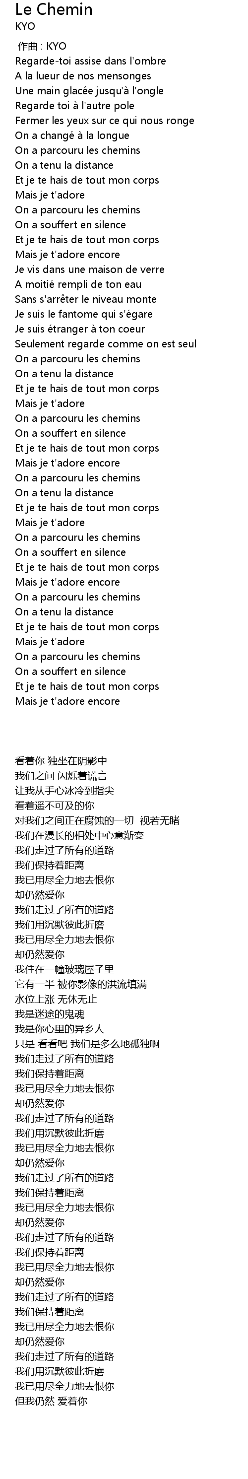 | [02:32.91] | Et je te hais de tout mon corps |