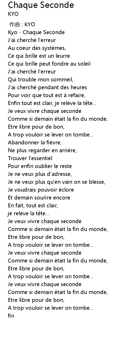 | [02:59.00] | Comme si demain é tait la fin du monde, |