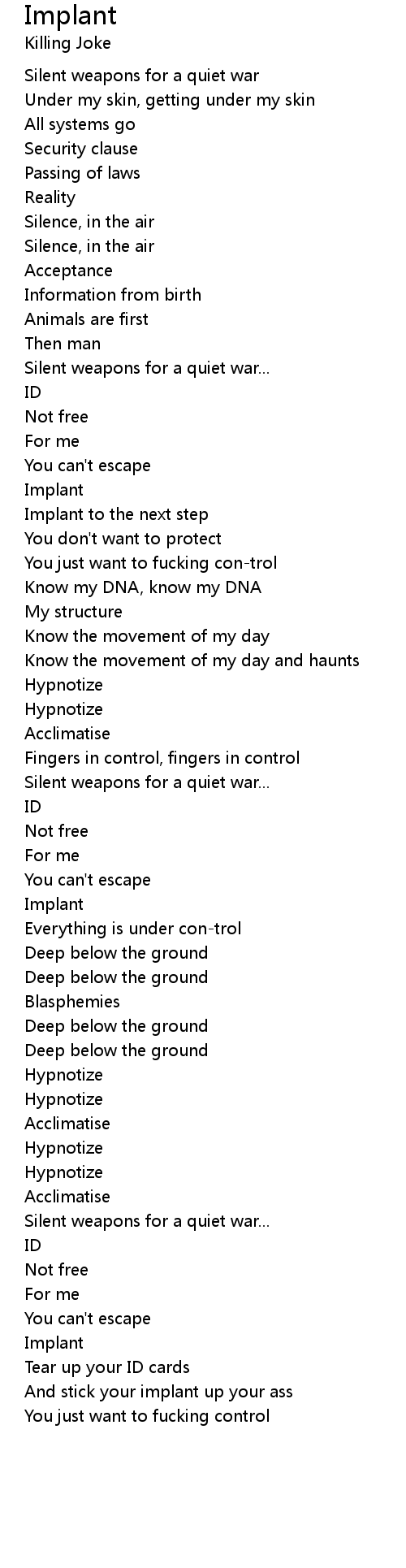 Implant Lyrics
