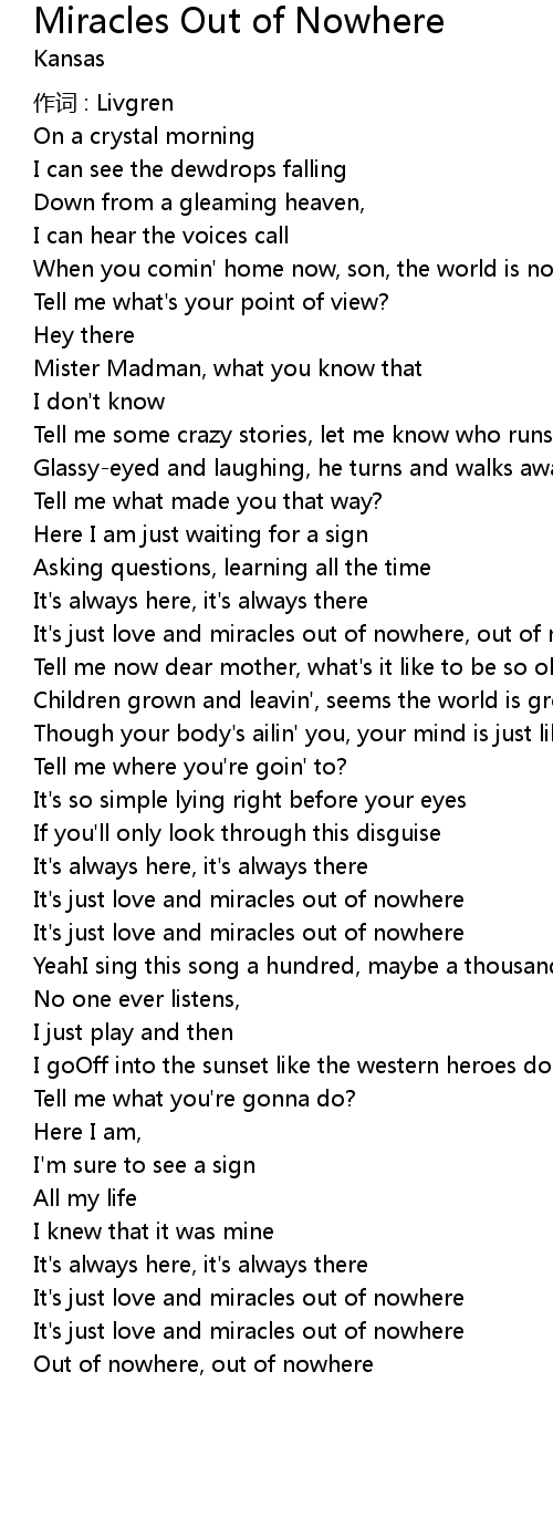 | It' s just love and miracles out of nowhere, out of nowhere | |