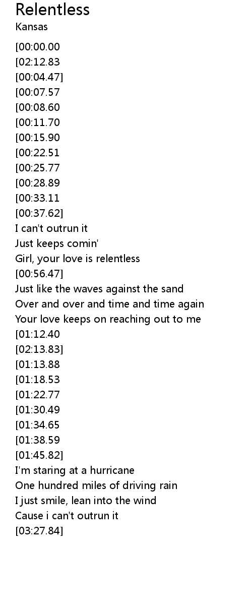 | [02:28.83][01:22.77] | Girl your love is relentless |