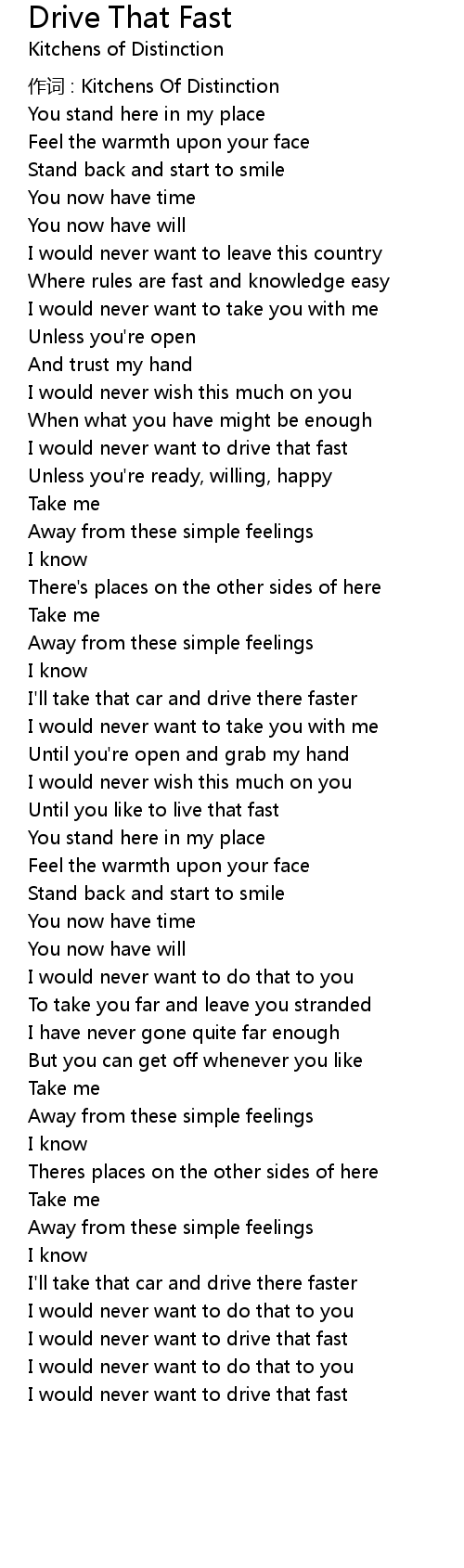| Song | Drive That Fast |