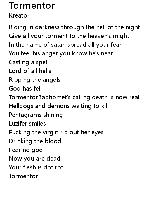 | Song | Tormentor |
