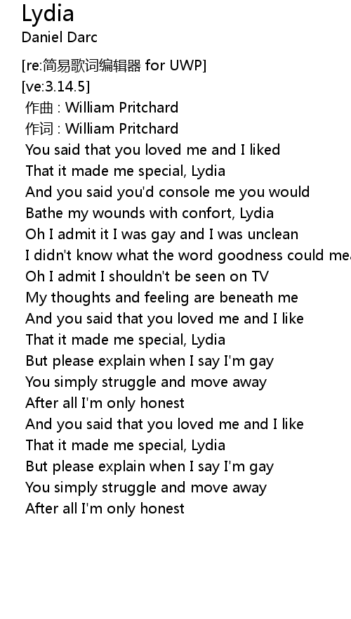 | [01:42.66] | That it made me special, Lydia |