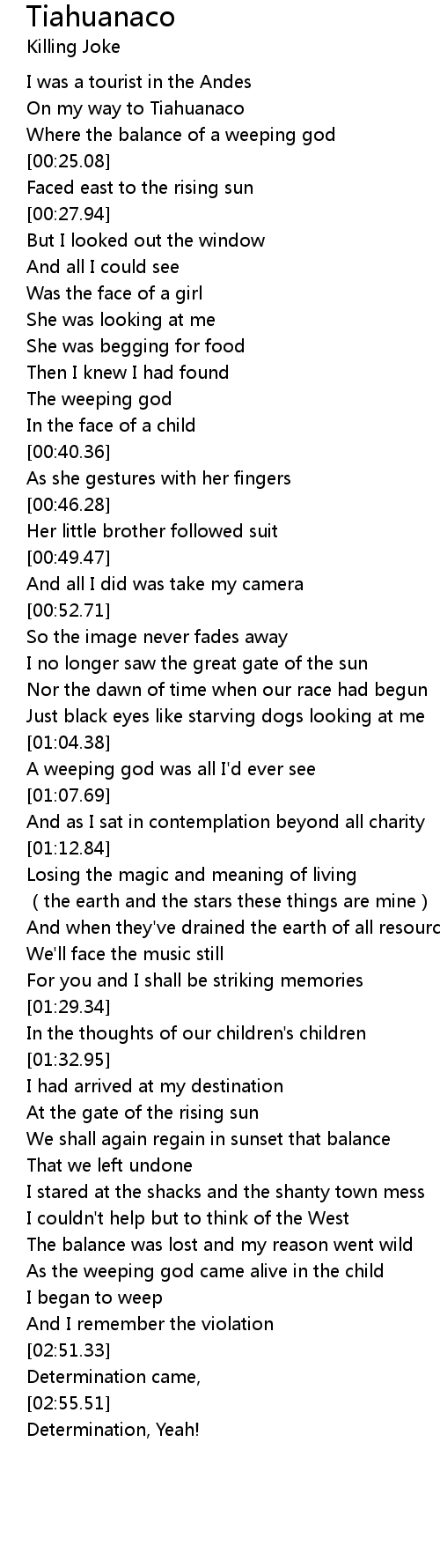 | [01:51.74] | I stared at the shacks and the shanty town mess |