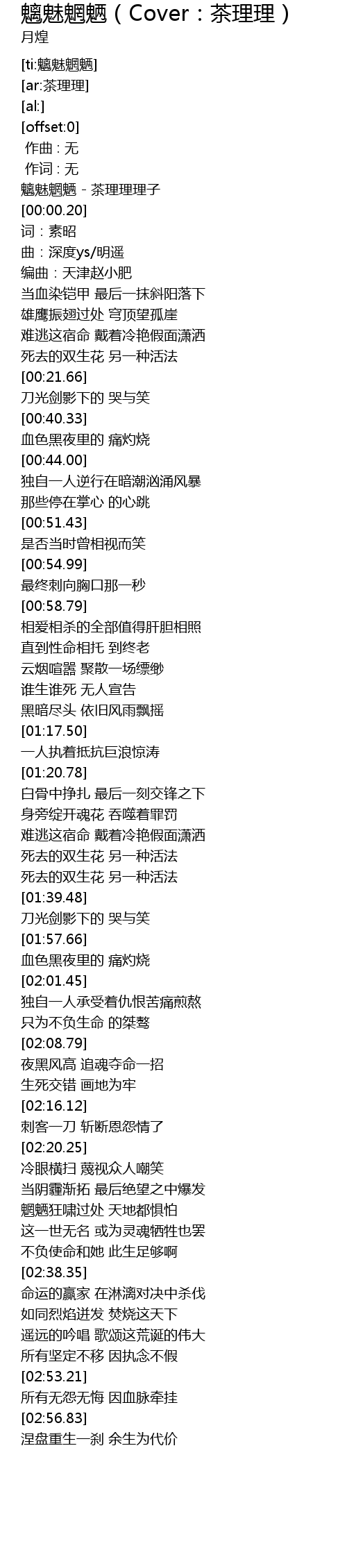 | [00:00.10] | 魑魅魍魉 - 茶理理理子 |
