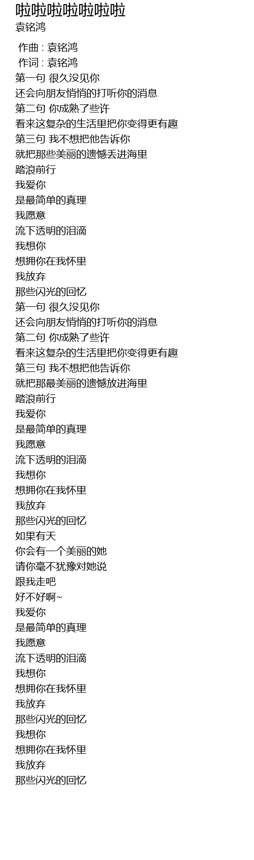 | [00:01.000] | 作词 : 袁铭鸿 |