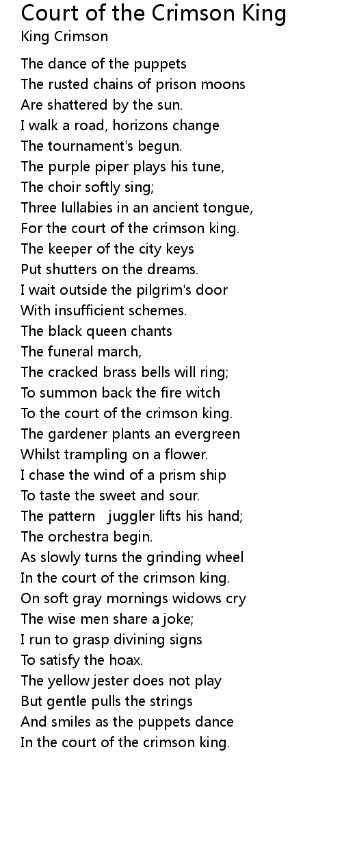 | To the court of the crimson king. | |