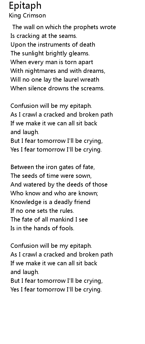 Confusion will be my epitaph. |