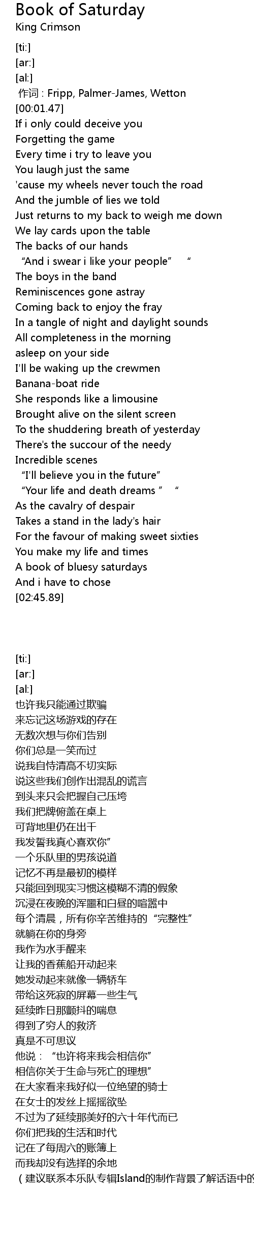 | [00:00.00] | zuo ci : Fripp, PalmerJames, Wetton |