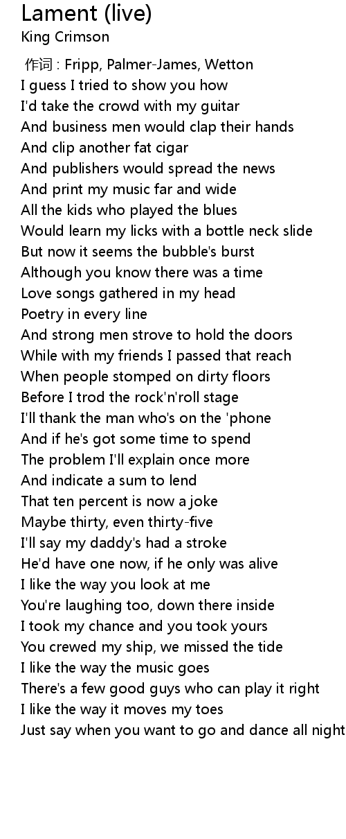 | [00:00.00] | zuo ci : Fripp, PalmerJames, Wetton |