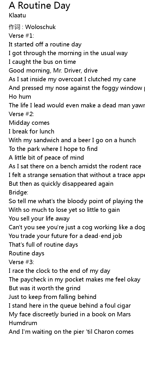 | Song | A Routine Day |