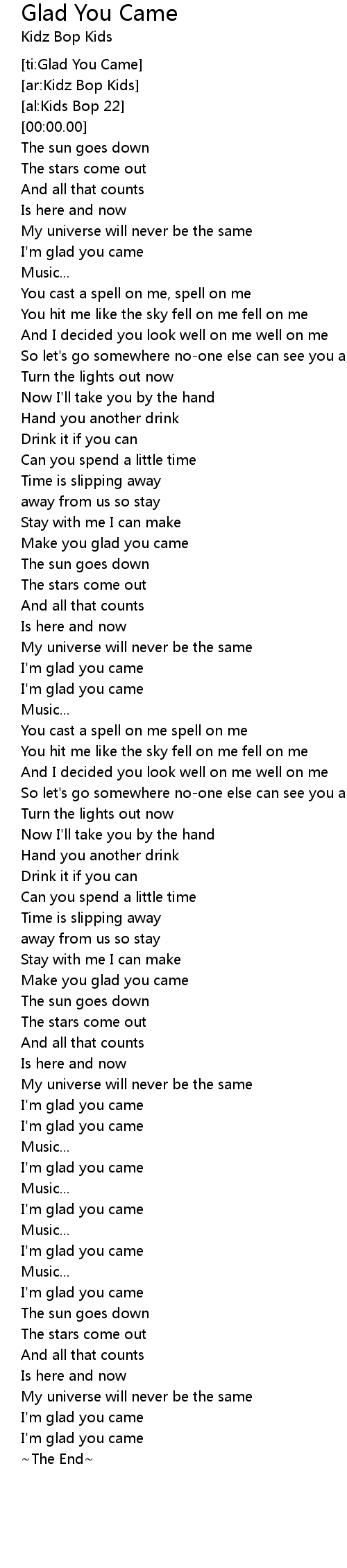 [ti:Glad You Came] |