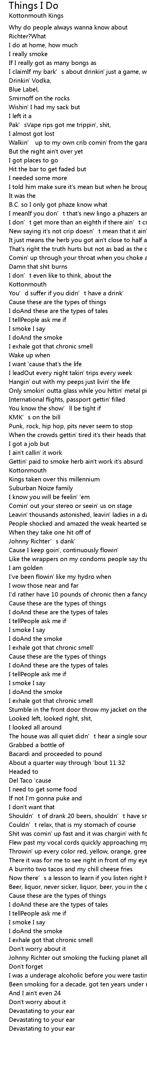 | Beer, liquor, never sicker, liquor, beer, you in the clear' | |