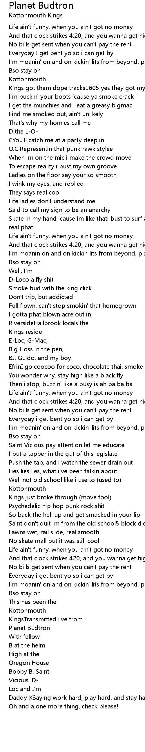 I'm moanin' on and on kickin' lits from beyond, planet budtron |