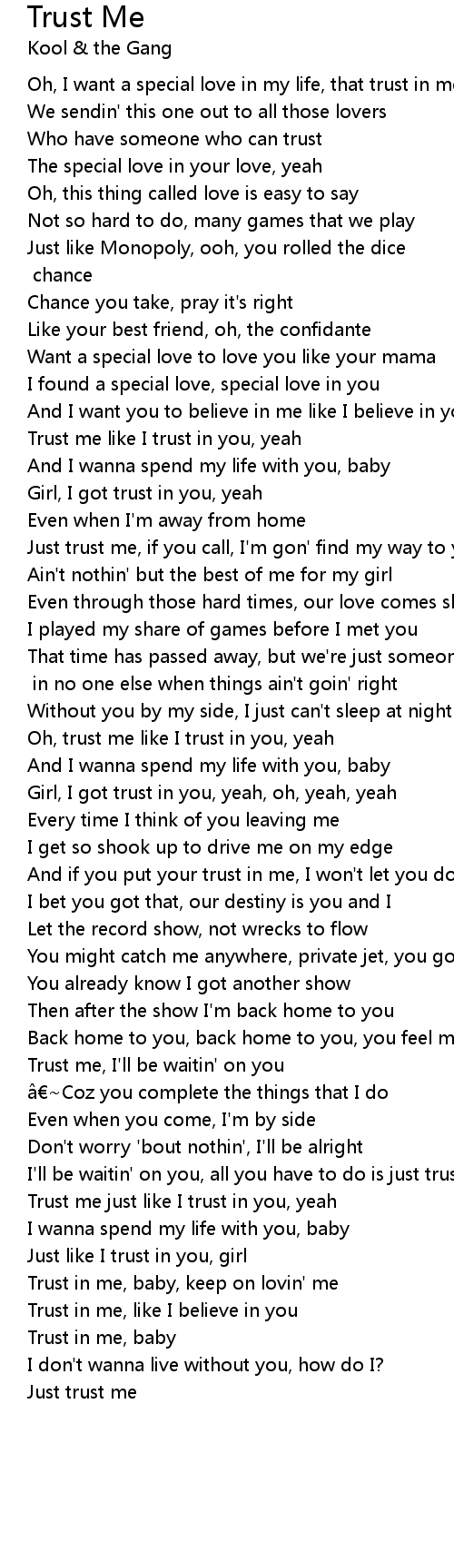 | Girl, I got trust in you, yeah, oh, yeah, yeah | |